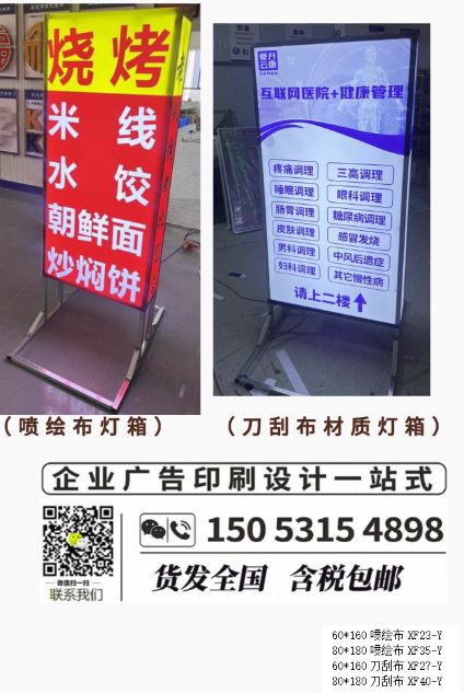 质量和价格从低到高,灯箱广告图片通常有喷绘布,写真布,灯箱片三种,可以根据需要选择材料,接下来分别介绍这些材料的特点。